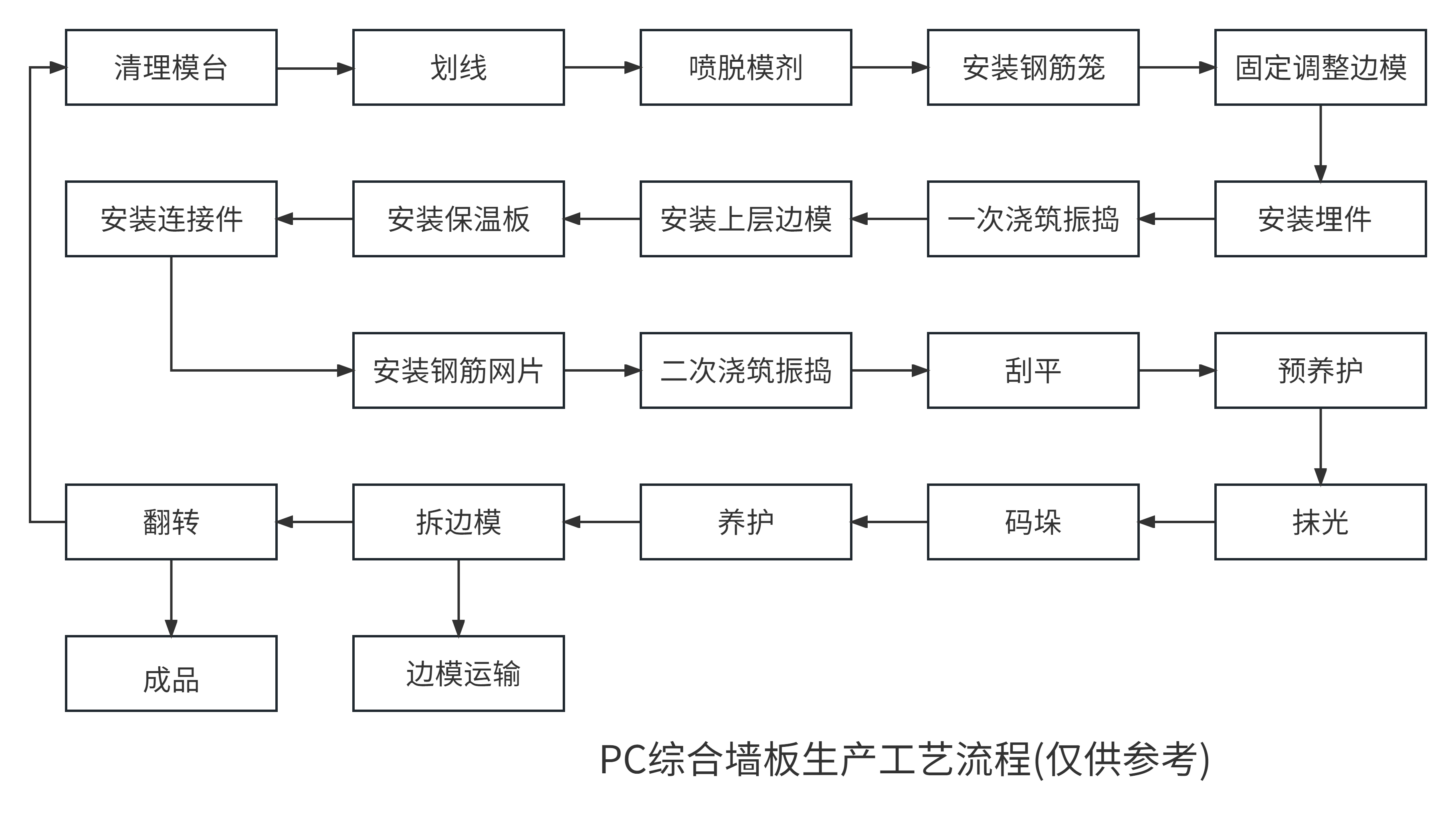 PC構件生產流水線采用現代工業(yè)做法,工作模臺流轉作業(yè),實現住宅預制構件批量生產,將傳統(tǒng)現澆工地大量立體分散的工作,轉移至工廠,大幅提高了功效,同時大量節(jié)省人工。
