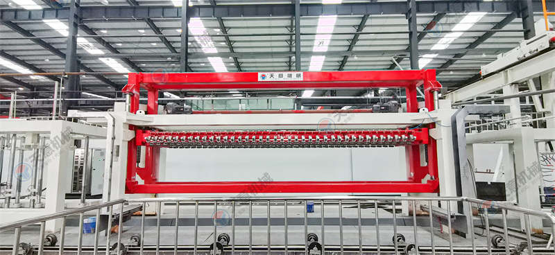 四、翻轉切割機組。其主要作用是:蒸壓加氣砌塊在澆注發(fā)氣后,形成大體積坯體,要使坯體達到所要求的產品尺寸,就必須用切割機切割。