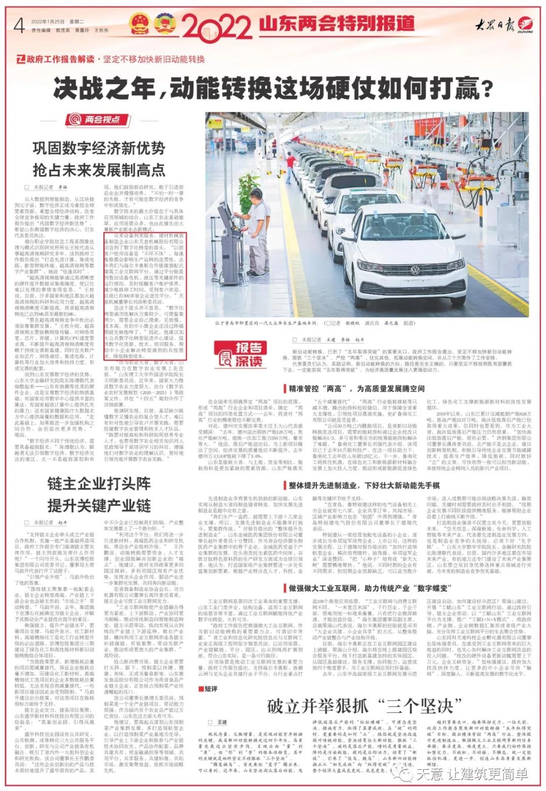 會議期間,劉洪彬提交了《關(guān)于加快山東省中小企業(yè)數(shù)字化轉(zhuǎn)型的建議》的提案,并就數(shù)字化轉(zhuǎn)型的相關(guān)內(nèi)容接受了大眾日報記者的采訪。劉洪彬告訴記者,“以前客戶使用設(shè)備是‘不壞不休’,每逢維修都會影響生產(chǎn)運轉(zhuǎn)的連貫性。去年我們搭建了裝配式建筑工業(yè)互聯(lián)網(wǎng)平臺,通過平臺能看到售出設(shè)備電機、液壓等關(guān)鍵部件的運行情況,及時提醒客戶維護保養(yǎng),減少維修停工時間,受到客戶歡迎,目前已有300多家企業(yè)進駐平臺。“數(shù)字化轉(zhuǎn)型通用性解決方案較少,可借鑒案例少,需要企業(yè)自己摸索,見效慢、成本高,有的中小微企業(yè)還沒過陣痛期就先被拖垮了。”因此,他建議“加大公共數(shù)字化轉(zhuǎn)型促進中心建設(shè),提供數(shù)字化資源、技術(shù)、培訓服務(wù),幫助中小企業(yè)解決轉(zhuǎn)型遇到的共性需求,降低轉(zhuǎn)型成本。”