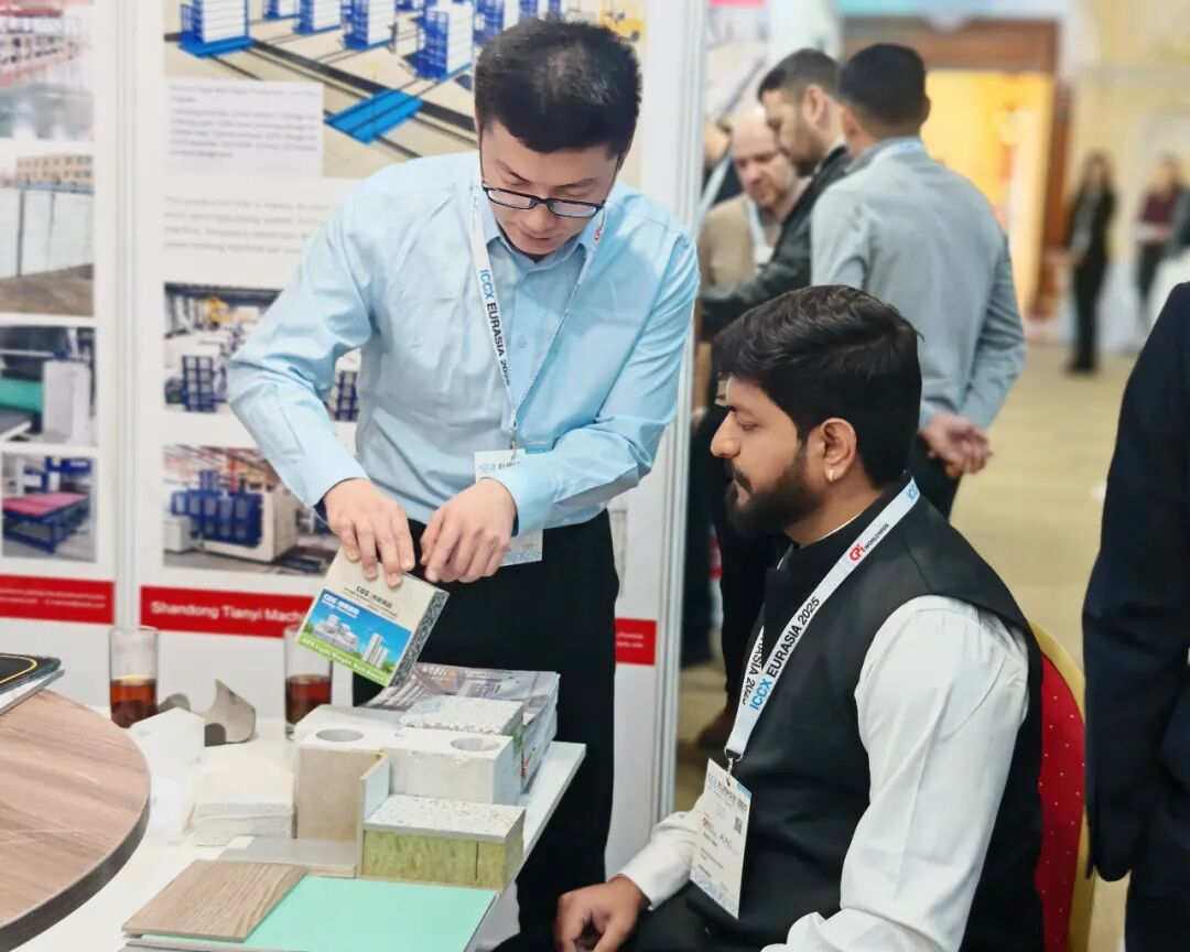 在裝配式建筑裝備方面,天意集團展示了PC生產線、墻板裝備和保溫裝飾一體板生產線。PC生產線自動化流程設計,減少人工依賴,契合當地勞動力技能水平不一的現狀,有助于提升施工穩定性;墻板裝備實現工業廢渣再利用,降低建材成本,符合環保政策要求;保溫裝飾一體板生產線可生產集多種功能于一體的新型墻體材料,采用模塊化設計,能根據客戶需求靈活配置不同飾面工藝,滿足中亞地區多樣化建筑風格需求。