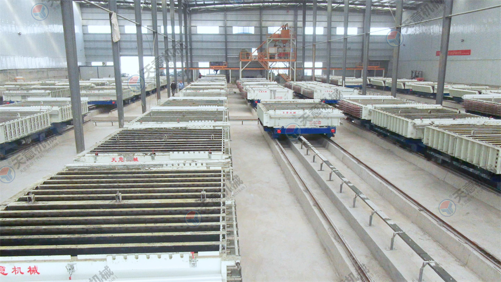 10.墻板機(jī)雙向開合,采用卯榫工藝焊接,確保大板焊接厚度以至,大板經(jīng)四面刨銑,能保證生產(chǎn)線上的模車一致,以便于后期整體上成型,自動抽芯機(jī),自動涂油機(jī)的安裝。